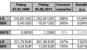 Auch wenn ein Umstieg auf Standardaktien oder andere Anlagen in den letzten Jahren Jahren effektvoller war, die säkulare Hausse bei Gold und Silber ist noch lange nicht beendet, und in einigen Jahren werden wir beurteilen können, welche Anlege langfristig die bessere ist.Grüsse