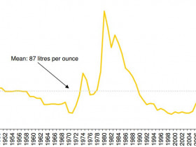 As anecdotal evidence, the bonus chart below shows the liters of beer that can be bought during the Oktoberfest, with one ounce of gold. It is still above its long term average, suggesting the bull market is still intact.“ ![]()