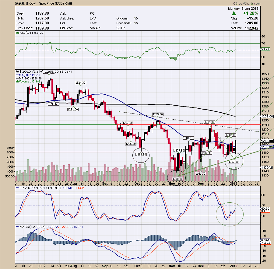 "Consensus outlook is that Gold goes lower, much lower and that US Dollar goes higher, much higher. Maybe consensus is right. However, consider for a minute that USD Index has gone through the roof since July of this year and Gold still remains at around $1,200 per ounce - same level that it traded exactly 18 months ago. If and when greenback takes a breather and pulls back, maybe Gold could surprise on the upside. Technically, the price remains compressed in a wedge, which should see a break in either direction sometime in earlier 2015...“