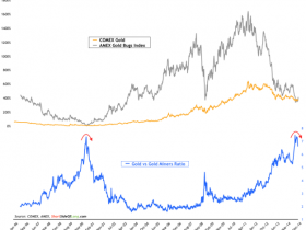 Ergänzernd ein 2.Chart Gold vs Goldminen. Hier ist erkennbar, daß die Goldminen vor einer neuen relativen Stärke stehen, wie verschiedentlich bereits berichtet.