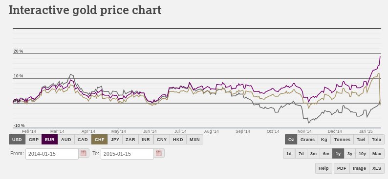 Und während der letzten 12 Monate fast + 20 %, sh. den Chart. Selbst Gold in SFR ist da, wo es vor 12 Monaten stand.