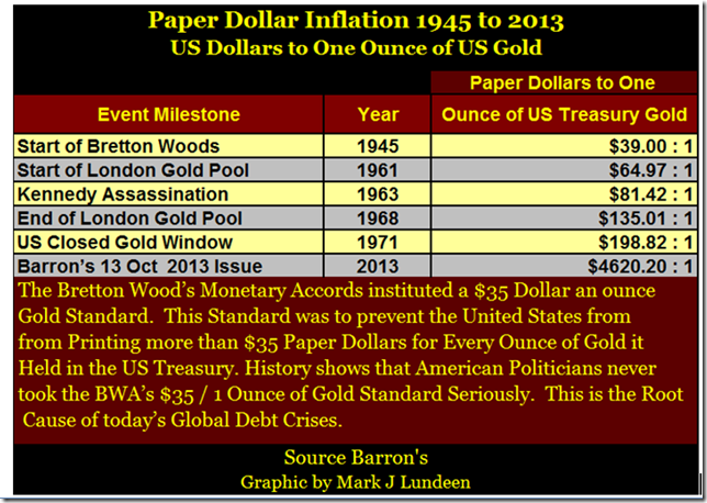 "Those in control will not allow the gold price to reach $18,000 an ounce where the 18,000 DOW sits today, but the DOW could drop 90%, as it did in 1929, to 1800 and gold rise to $1,800 an ounce! Could one accept the very real possibility that the DOW will unhinge by 50%…and gold rise to $9,000 an ounce? Look at these historical DOW to GOLD ratios....