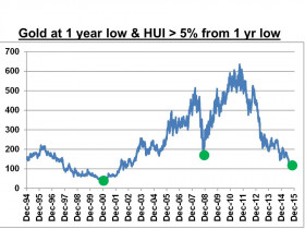 Relative Goldtiefs und HUI + 5 % über Tiefs, 3 mal erfolgt seit 2000: 2 an markanten Wendepunkten und zum gegenwärtigen Zeitpunkt, mhhhh....