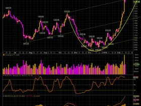 Eine Korrektur steht bevor, aber danach dürfte sich der Aufwärtstrend fortsetzen, vermutlich sehen wir hier die Tasse mit Henkel Formation im Ansatz, bei der der Henkel fehlt.