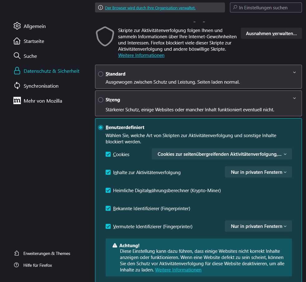 Win 10 Pro mit FF und Blocker