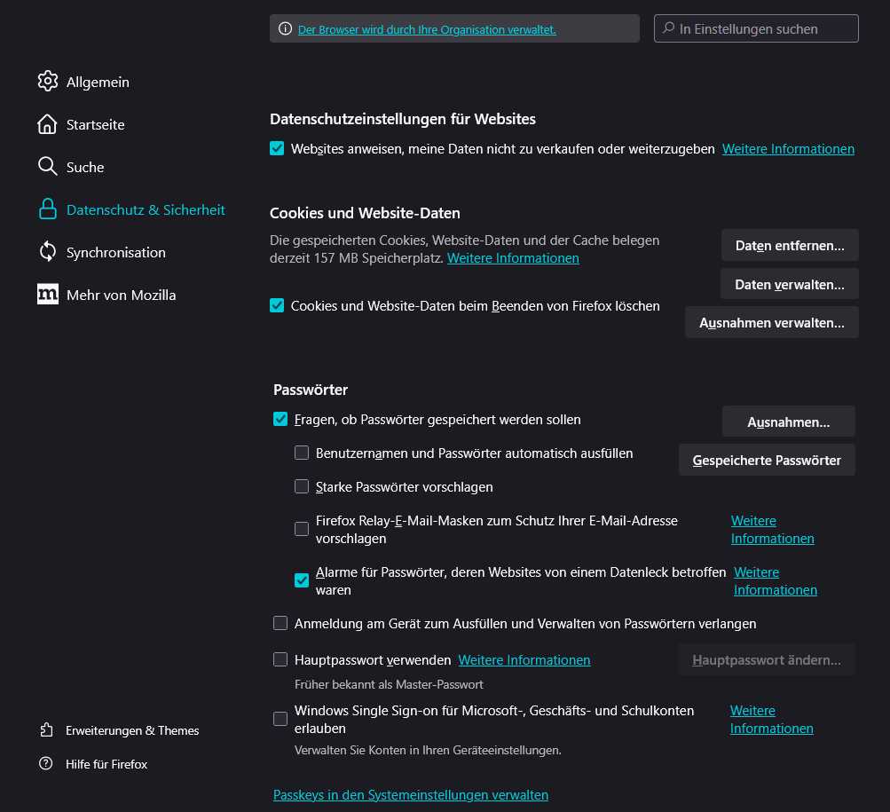 Ich ändere generell nichts an den Einstellungen, wenn ich einzelne Seiten besuche.