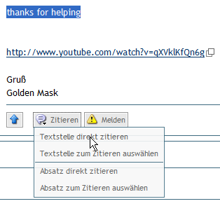 Habs es erste mal versucht grade... Text den ich zitieren will markiert denn auf Text direkt zitieren voilà geht ![]()