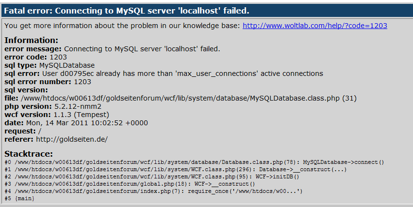 Da war aber mehr kaputt, das war bei mir nicht die übliche Max User Connection Meldung.