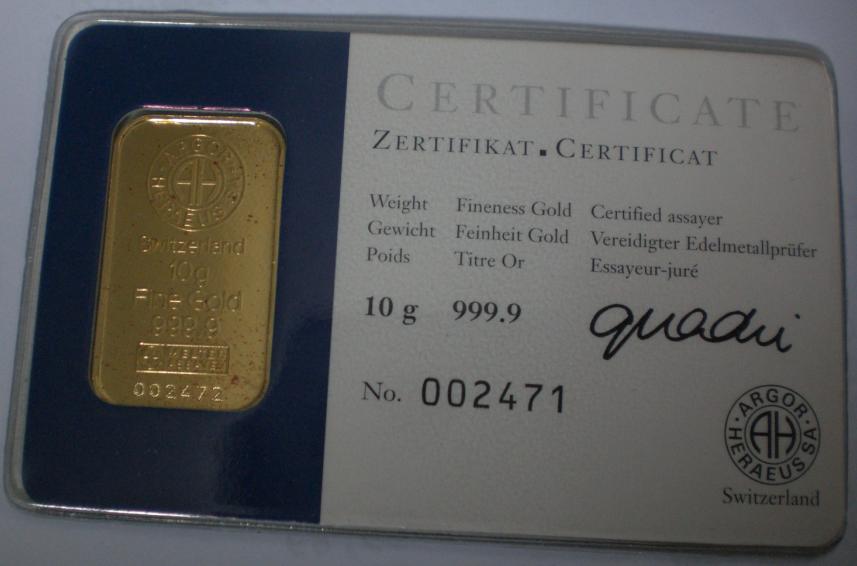 Ich habe heute nach längerer Zeit einen 10g Goldbarren (habe ich seinerzeit zu meinem 18ten bekommen: Kinebar 2000, 999.9er Gold, Zertifiziert von Argor Heraeus, Nummer: 002472, eingeschweißt) zur Hand genommen und mir sind zwei Dinge aufgefallen. Erstens ist die Seriennummer auf dem Barren 002472, auf dem Zertifikat hingegen 002471 und zweitens finden sich kleine rote Flecken auf der Rückseite des Barrens. Könnten mir bitte jemand sagen, woher diese Flecken kommen könnten und was ich bezüglich der abweichenden Seriennummer tun soll (falls man mal übers Verkaufen nachdenkt)? Ist man gar einem Fälscher aufgesessen und ich schleppe seit Jahren wertloses Metall mit mir rum? Habe mich nämlich nicht getraut den Barren auszupacken (Wertverlust und so... ;( )