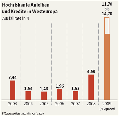 Experten rechnen für 2009 und 2010 mit so hohen Kreditausfällen wie noch nie.