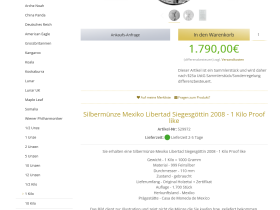 Davon kannst du ausgehen, dass die 1 Kilo Libertad 2008 Proof unter 2.000 € kostet bzw. dir bringen wird.