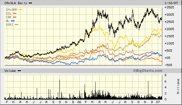 Wheaton River has a market cap of 1.47 billion at $2.58/share. I have no idea of the quality of the silver properties, but somewhere in the back of my head, I remember removing WHT from my report when I discovered that about 10% of their money came from the production of silver. As a gold company, I have not listed them. For the market cap to be $250 million, with a $70 million Cdn private placement already done, there is serious, serious, big-money demand for silver focused investments out there in the world right now.