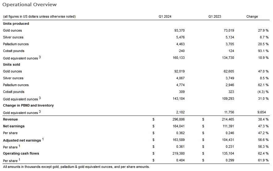 • Wheaton Precious Metals Announces First Quarter 2024 Results