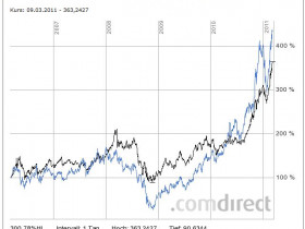 09.03.11 Silver Wheaton (NA, Kurs 44,66 $, MKP 15.492 Mio A$) meldet für das Dezemberquartal (Septemberquartal) einen Anstieg der Silberproduktion auf 6,1 Mio oz (5,5 Mio oz), was einer Jahresrate von etwa 24,5 Mio oz entspricht. Zusätzlich wurden 4.100 oz (7.000 oz) Gold gefördert. Bis 2015 sollen die Silberverkäufe auf jährlich 43 Mio oz gesteigert werden. Bislang konnte Silver Wheaton die Vorgaben in der Vergangenheit bis auf mäßige Verzögerungen umsetzen. Silver Wheaton arbeitet als Royaltywert, der Silber zu einem festen Preis aufkauft und im Gegenzug Silber produzierende Gesellschaften finanziert. Auf der anderen Seite kann Silver Wheaton das aufgekaufte Silber zum Tagespreis verkaufen und profitiert so direkt von jedem Silberpreisanstieg. Dabei arbeitet Silver Wheaton mit Verträgen mit einer Laufzeit von 20 bis 25 Jahren. Im Septemberquartal kaufte Silver Wheaton das Silber zu 4,02 $/oz (3,98 $/oz) an und erzielte einen Verkaufspreis von 26,41 $/oz (19,51 $/oz), so daß eine Bruttogewinnspanne von 22,39 $/oz (15,53 $/oz) erreicht werden konnte. Silver Wheaton macht keine Angaben über die aktuelle Gewinnsituation. Bei vergleichbaren Abschreibungen und Verwaltungskosten dürfte der operative Gewinn von 13,70 $/oz auf 20,56 $/oz angestiegen sein, so dass der operative Gewinn auf etwa 120 Mio A$ angestiegen sein dürfte, was einem aktuellen KGV von 32,3 entspricht. Mit dem Anstieg des Silberpreises auf aktuell 35 $/oz dürfte das operative KGV in den Bereich von 22 bis 25 zurückgefallen sein. Derzeit hat Silver Wheaton mit ihren Verträgen den Zugriff auf 944,6 Mio oz Silberreserven und 1,34 Mrd oz Silberressourcen, was bei einer jährlichen Förderung von 43 Mio oz einer Lebensdauer der Reserven von 22,0 Jahren und einer Lebensdauer der Ressourcen von 31,2 Jahren entspricht. Am 03.03.11 erklärte Silver Wheaton die Zahlung einer ersten Quartalsdividende in Höhe von 0,03 $, was einer Rendite von 0,3 % entspricht. Silver Wheaton ist nicht durch Vorwärtsverkäufe belastet. Im Dezemberquartal wurde die Beteiligung an Bear Creek auf 13,3 Mio Aktien im Wert von aktuell 155,0 Mio A$ aufgebaut, was einem Anteil von 14 % an Bear Creek entspricht. Am 31.12.10 (30.09.10) stand einem Cashbestand von 428,6 Mio A$ (255,2 Mio A$) eine gesamte Kreditbelastung von 373,1 Mio A$ (386,0 Mio A$) gegenüber.
