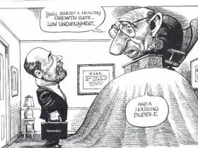 Falls die Preise für US-Eigenheime weiter fallen, könnte sich die derzeitige Krise bei zweitrangigen Hypothekenkrediten ausweiten, sagt der Ex-Geldpolitiker. Der Markt für überschuldete Hauseigentümer sei kein kleiner Bereich, fügt Greenspan warnend hinzu. Bislang sehe er allerdings kaum Anzeichen, dass die Gemeinschaft der amerikanischen Verbraucher insgesamt von der Überschuldungskrise betroffen ist, schränkt Greenspan wieder ein.