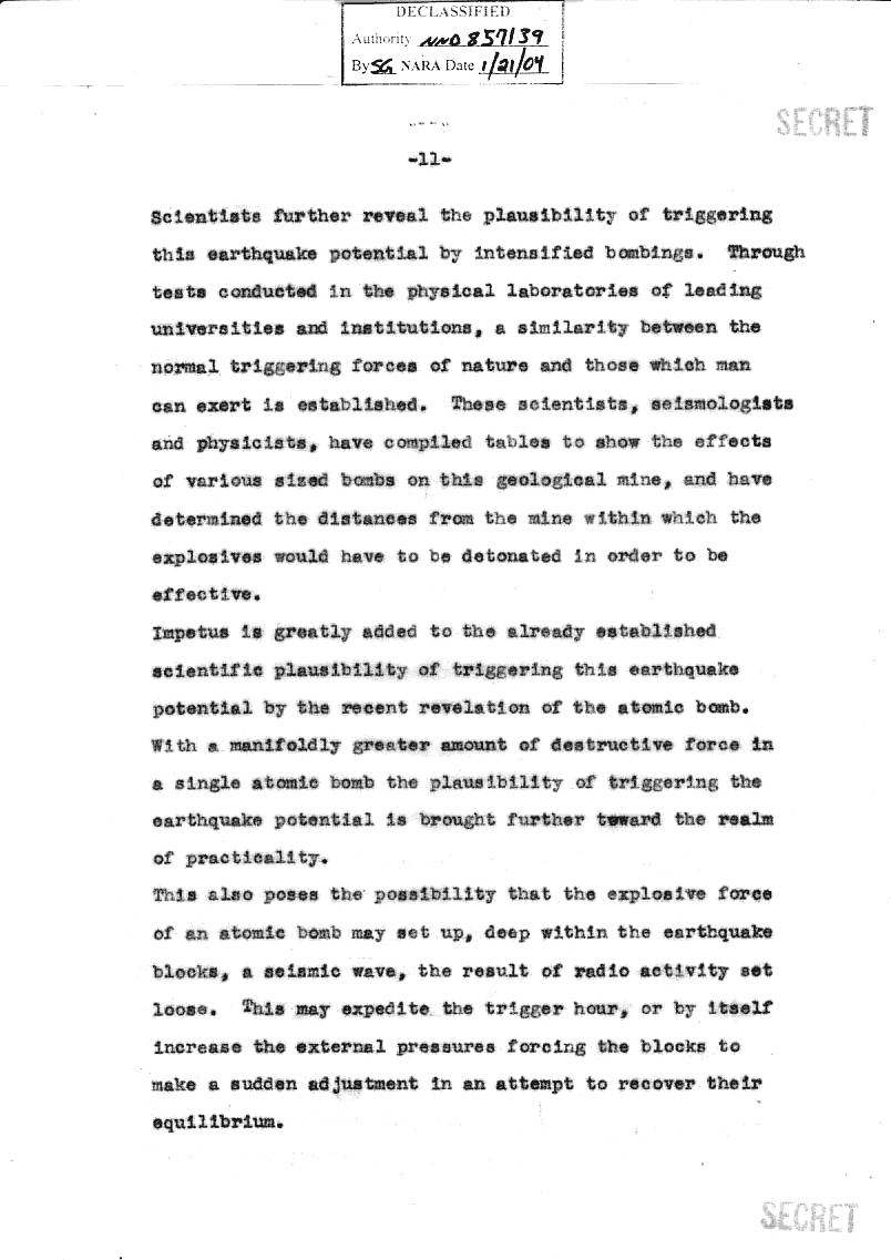 Anm.: Ich glaub mich tritt ein Pferd. ERSTAUNLICHHHHHH, was FEMA alles weiß. Kann man mit einer A-Bombe ein Erdbeben auslösen??!