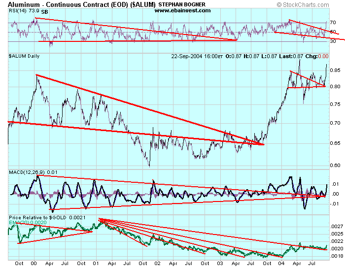 Kupfer zum Beispiel bricht bereits zum vorherig markierten Widerstand aus, sollte der USD nun nach unten thrusten, so duerfte dieser Widerstand zur Unterstuetzung werden.