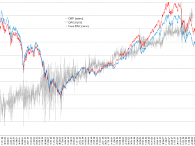 Jetzt weiß ich was da nicht passte... Wenn man Schlußkurse nimmt, dann sehen die linien relativ gerade aus... Siehe Grafik. Das Verhältnis der Indexe hat sich zyklisch mit den Dividendenzahlungen verändert. Ob dadurch ein grundsockel entsteht... ich bin mir immer noch nicht sicher.