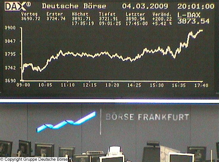 Der DAX-Chart hat heute sehr grosse Ähnlichkeit mit dem wehenden blaufarbenen Toilettenpapier des Logos der Deutschen Börse ...