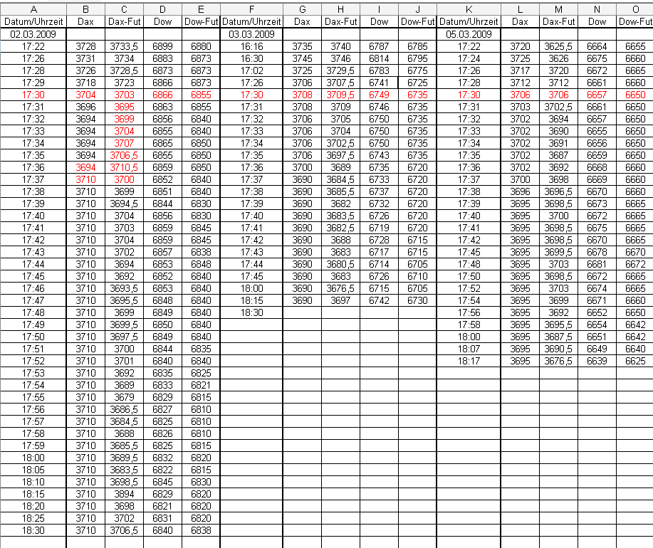 Seit Tagen stemmt man sich mit gezielten Aktionen gegen den "Markttrend" und siehe da, während der DAX heute auf einem ähnlichen Stand wie am 02.März (jeweils um 3700 Punkte) schloß, stand der DOW heute zum Ende des Börsenhandels in Frankfurt gute 200 Punkte niedriger.