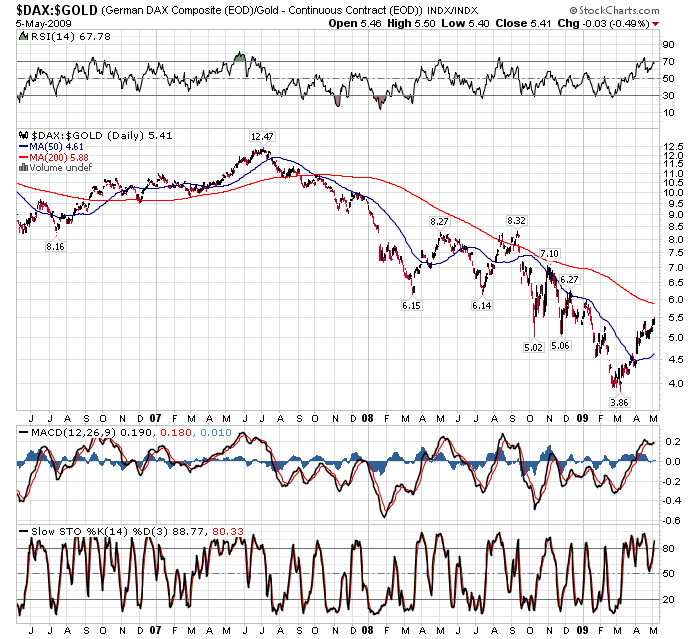 Der DAX/Gold wird fallen, kurzfristige Rallyes bedeuten da gar nichts. Geduld mit den Edelmetallen und nicht auf Aktien-Rallyes hereinfallen, seien sie noch so verlockend! Wir sind in einem Bärenmarkt, was Aktien betrifft. Punkt.