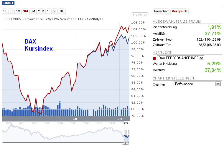 Ich denke aber daß eine solche vereinfachte Rechnung auf die heutige Krise nicht anwendbar ist da die Möglichkeiten zur Marktbeeinflussung heute viel umfangreicher sind als früher. Vielleicht wird es auch so sein daß zukünftig die Aktienmärkte florieren (aufgrund der in Umlauf gesetzten Geldmenge) obwohl die Wirtschaft darniederliegt... ![]()