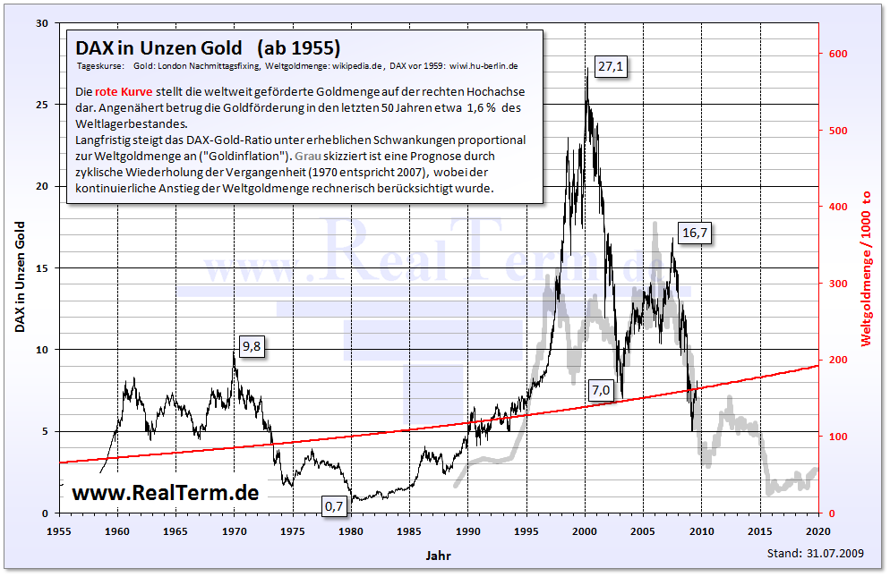 Der Dax wird in einigen Jahren ueber 10.000 Punkten stehen, ja. Er wird diese Groessenordnungen erreichen, weil "gross" in Geldeinheiten dann relativ ist. Weil es immense Liquiditaet im weltweiten Waehrungssystem gibt und dieses Geld nicht wie nach geoeffneten Schleusen in Broetchen oder Kaugummi, sondern in Aktien fliessen wird. Die Aktienquoten der meisten Fondgesellschaften sind nachwievor auf historischen Tiefs. Es besteht weiter erheblicher Anlagebedarf.