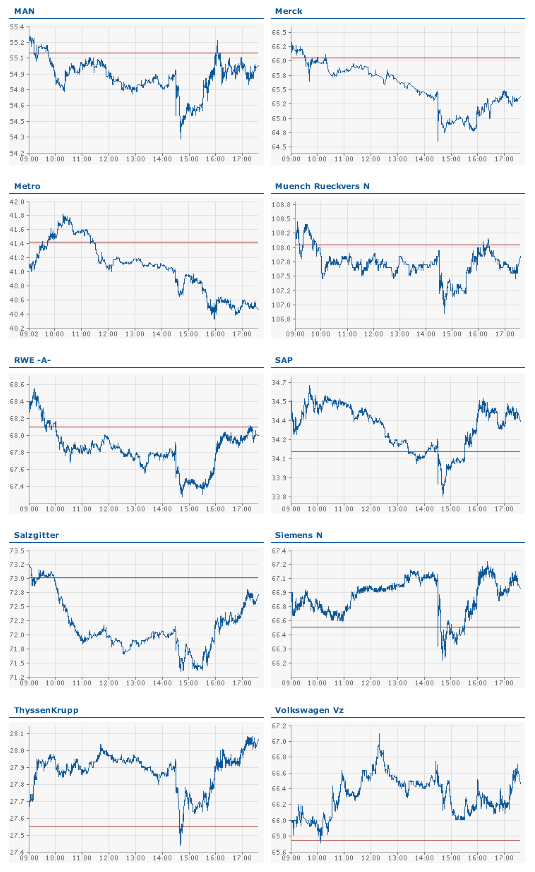 Der DAX ist heute um 14:30 innerhalb von Minuten kräftig eingebrochen - dann jedoch auf mystische Weise innerhalb kürzester Zeit wieder erholt