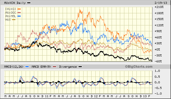Eine der Voraussetzungen wäre ein guter Chart. Selbst hier ist KCN in schwerem Wasser: Dead Cross der 100 mit 200 MA ist bedenklich, auch 200 MA fallend.