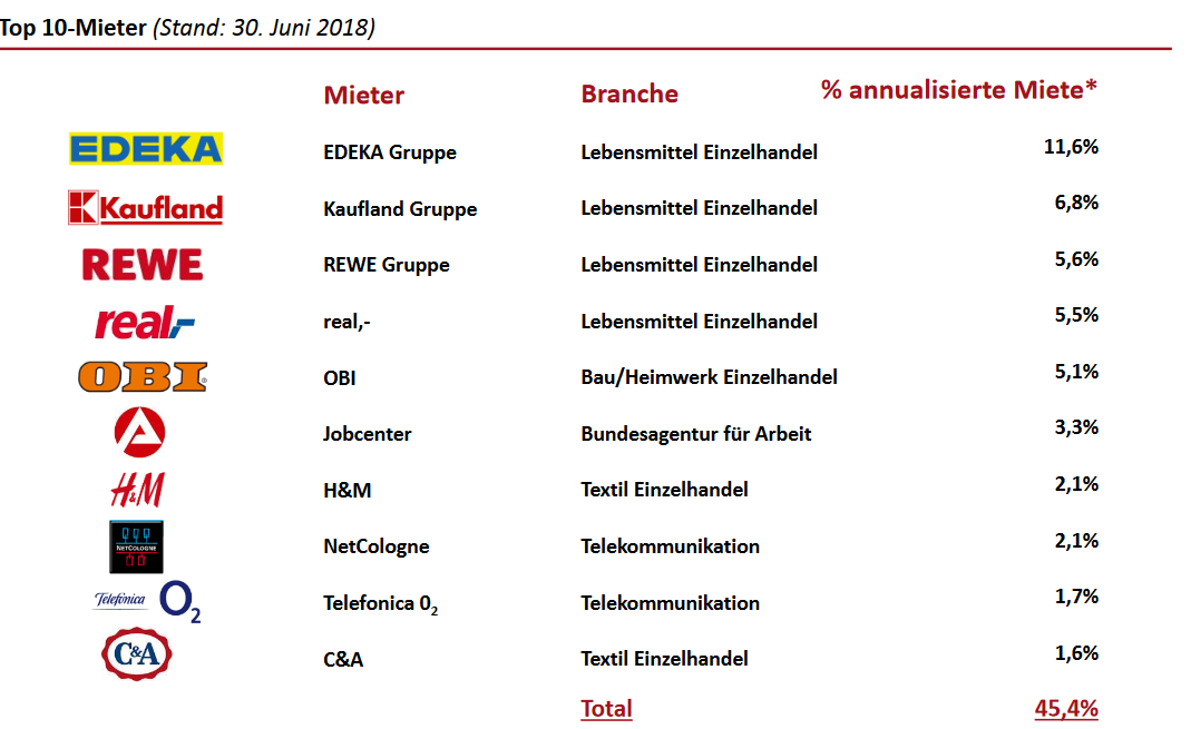 Den Schwerpunkt des Bestandes bilden attraktive Einzelhandelsflächen in zentralen Innenstadtlagen deutscher Großstädte und Mittelzentren sowie hoch frequentierte Fachmärkte
