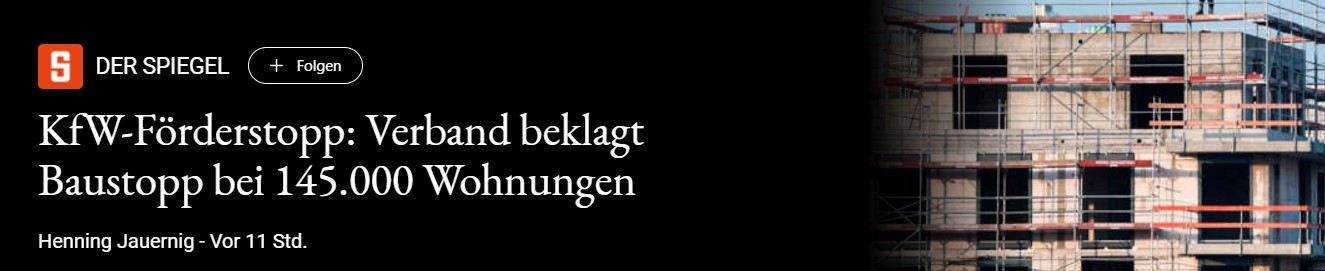 Muss man sich mal vorstellen. Habeck macht Förderstopp für KfW 55 Programm urplötzlich vor einer Woche.