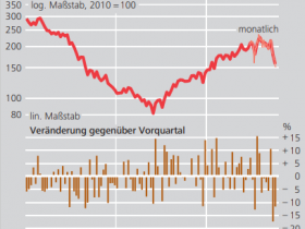 Jupp die Grafik in absoluten Zahlen ist schon deutlicher, als die von mir ein paar Beiträge drüber gepostete indexierte und bereinigte mit log-Skala von der Bundesbank. Da stößt man nur im Test auf die minus 39% per Oktober.
