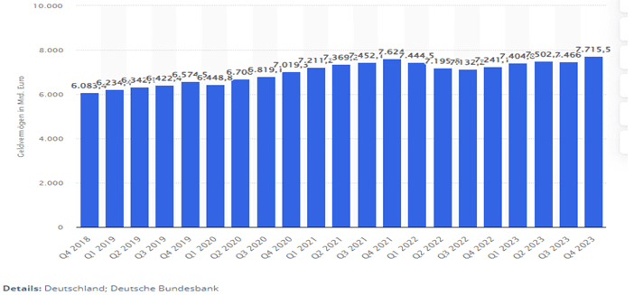 Wo ist etwas zu holen? Wie hoch ist das private Geldvermögen in Deutschland. Statista und die Bundesbank haben die Antwort (Dank an Herr D. für Hinweis!). Es sind gut 7,7 Billionen EUR. Machen Sie sich Ihre Gedanken.