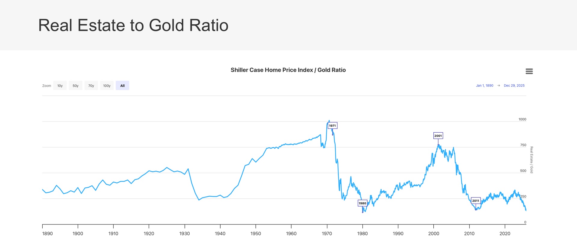 Dieser „Immobilien-in-Gold“-Chart ist für mich kein Kaufargument (egal ob in D oder anderswo). Eine niedrige Ratio heißt nur, dass Gold stark war. Mehr nicht. Sie sagt nichts darüber aus, ob Immobilien heute billig sind. Billig ist für mich ausschließlich das, was mich heute netto bezahlt in meine Tasche.