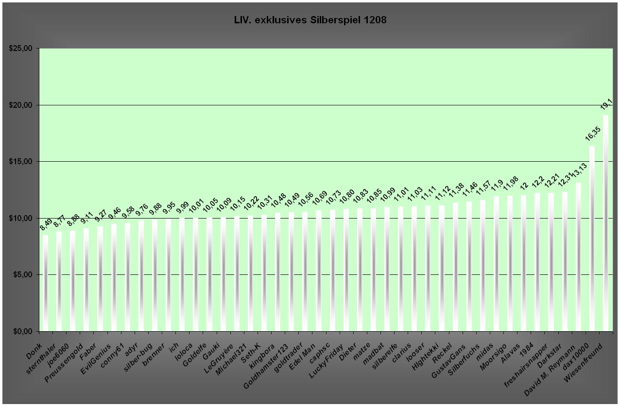 So sind die Abweichungen vom Monatsendstand US Dollar 11,05. Wir haben also in der letzten Runde 2008 auf dem Treppchen an dritter Stelle 2 Gewinner stehen. Diese teilen sich die Ausschüttung für den dritten Platz, entspricht nach unseren Regeln 20% der Gewinnsumme.