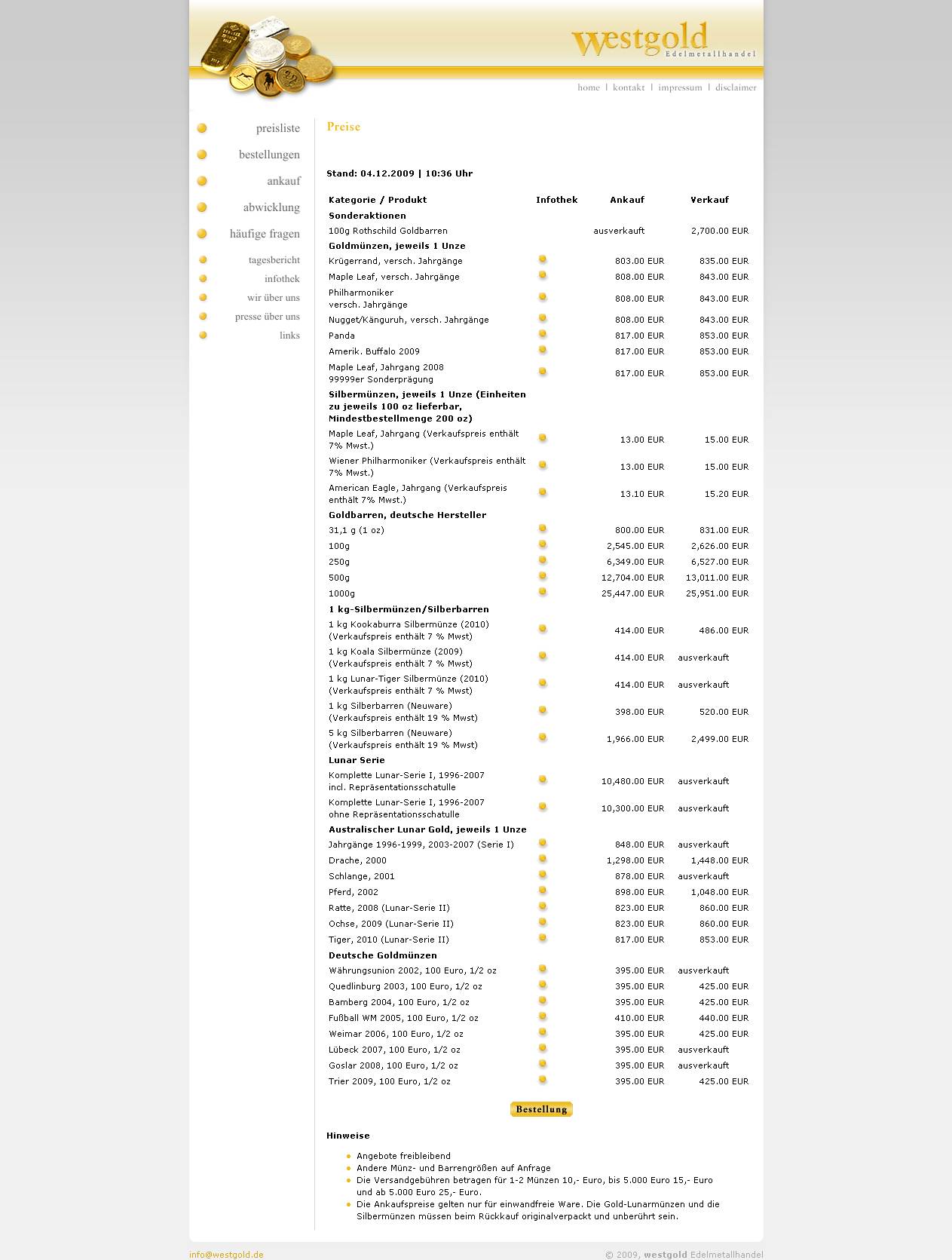 WG-Gussbarren-Angebote bzw. Sonderaktionen werden in der Preisliste immer so dargestellt (siehe Preisliste aus 2009). Natürlich kaufen sie diese Barren auch an ... Ankauf-Preise gilt es zu erfragen.