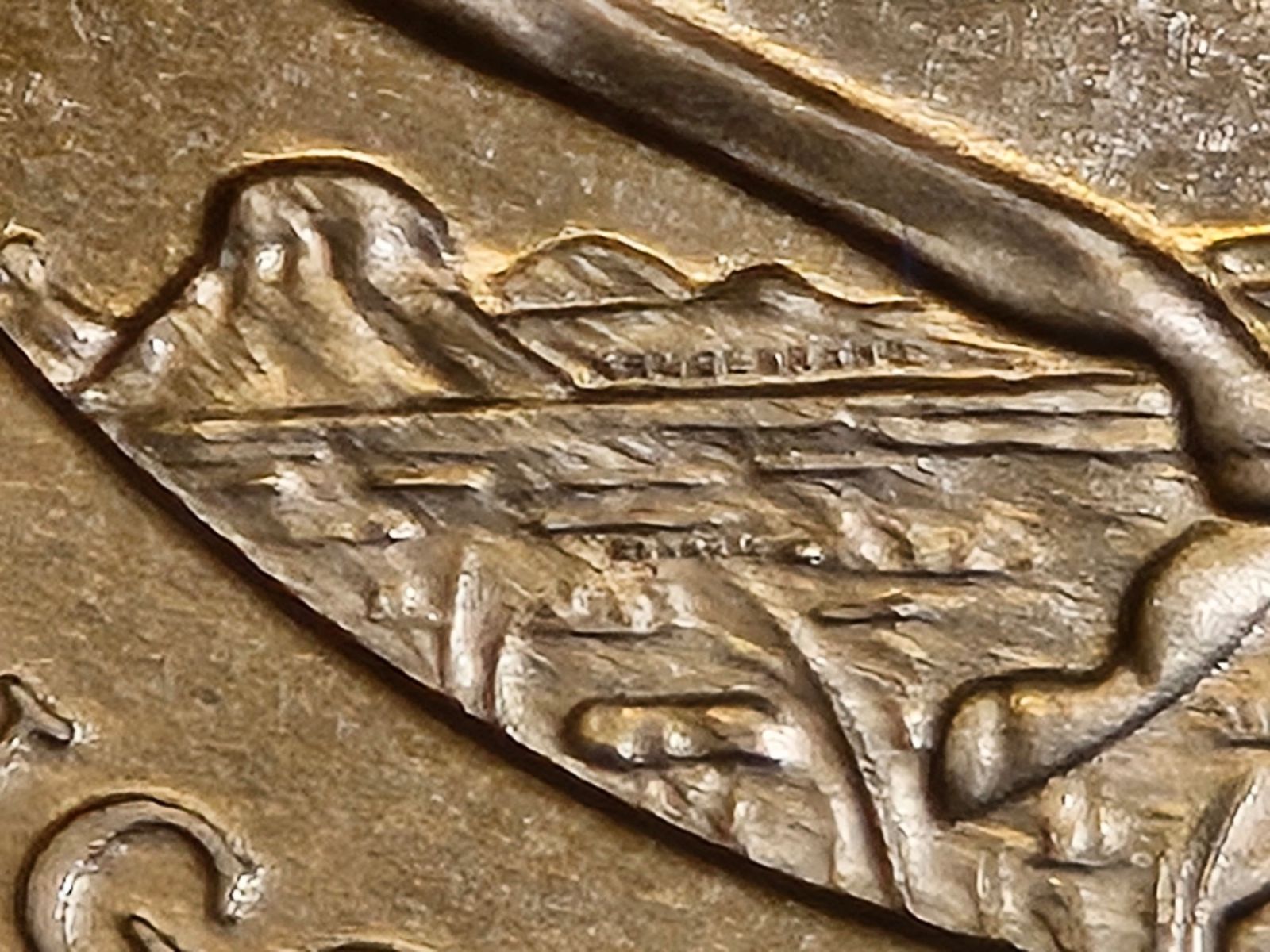 Edit: Mit der Juwelierlupe (10x Vergrößerung) kann man die Schriftzüge schön erkennen, allerdings kann man nur Krügerrand lesen, das darunter gelegene 0 SARB25 (?) ist nochmals deutlich kleiner. Und was die 0 bzw. das O soll weiß ich auch nicht.