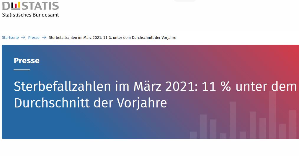 Diese Zahlen vom Statistischen Bundesamt strafen alle die Lügen welche den fortlaufenden Ausnahmezustand und die Aushebelung von Grundrechten mit einer Pandemie begründen.