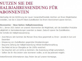 Ab 2021 wird die Möglichkeit einer Sammelsendungsoption ("Halbjahressendung") für Abonnenten eingeführt.