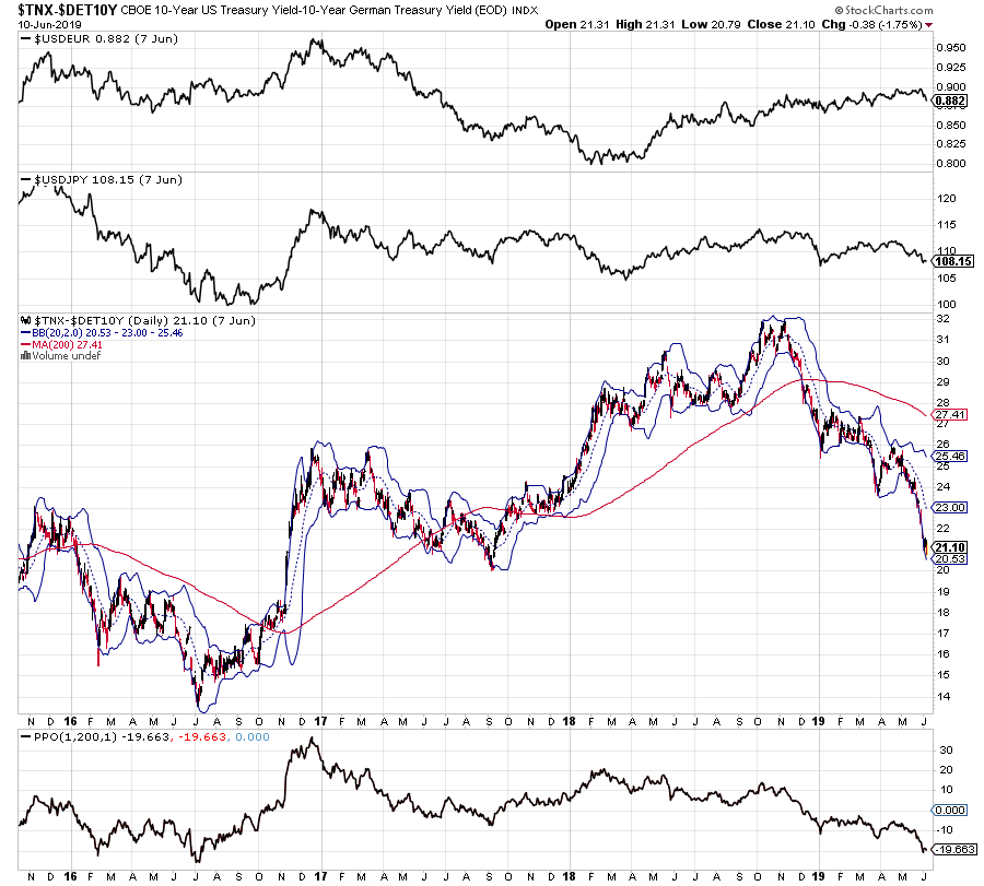 Zinsdifferenz $TNX-$DET10Y --> USzins minus deutscherZins = Zinsdifferenz