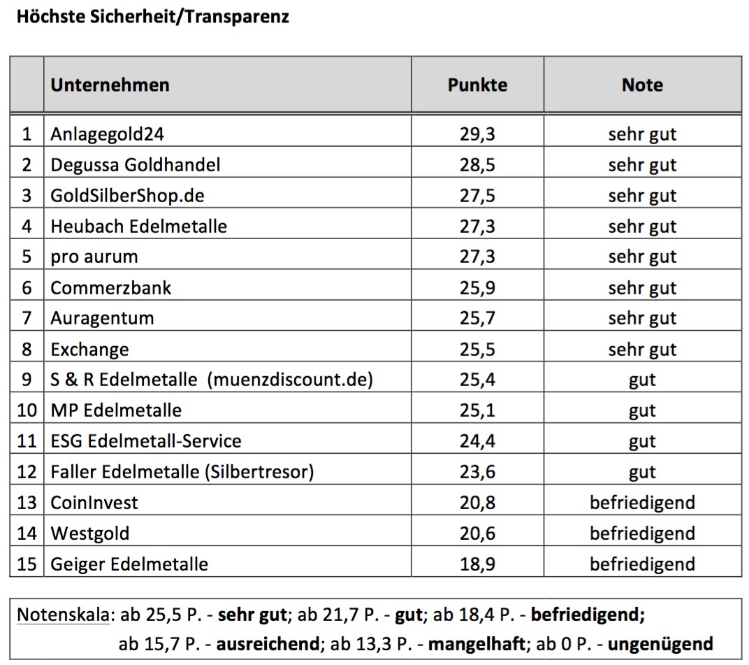 Diese Liste der Edelmetallhändler dieses Institutes, nach anderen Kriterien, wird hier noch mal differenziert, für Leute die es interessiert: