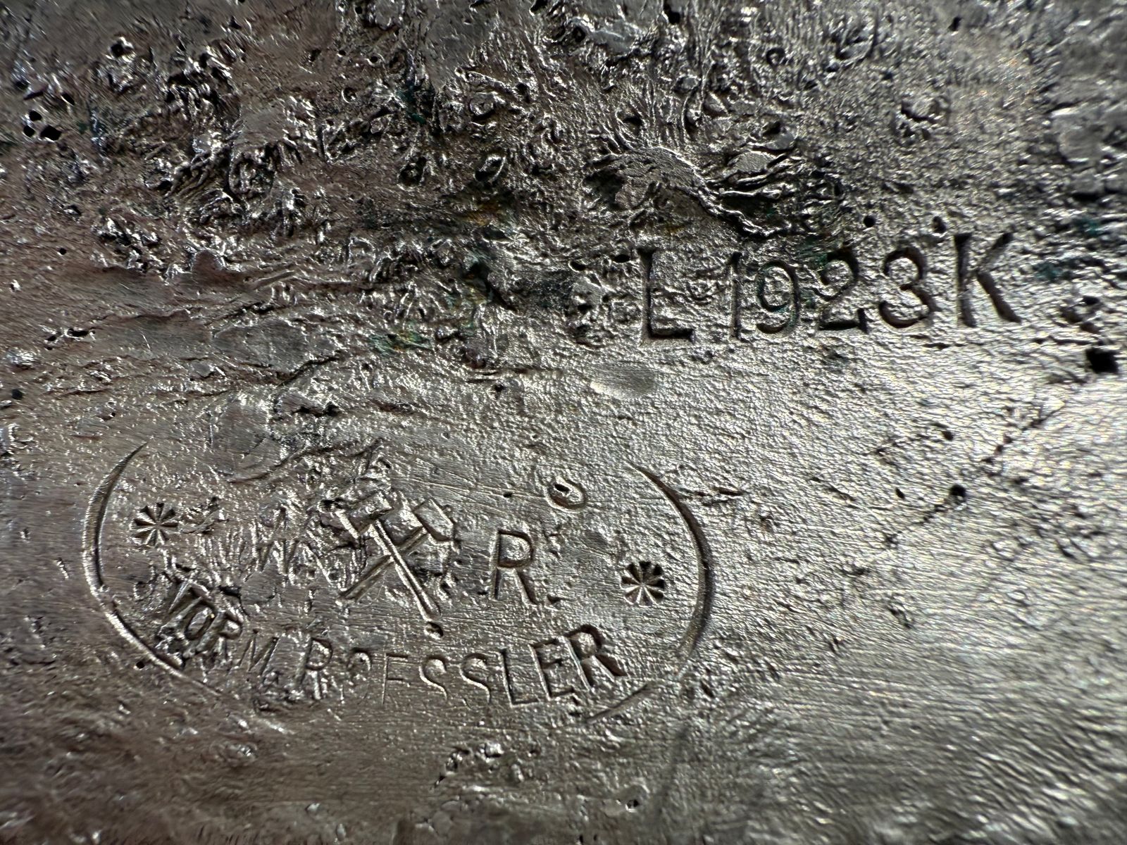 • Zentralsymbol: ein Kreuzhammer mit Gabelspaten (kein Schwert) → metallurgisches Handwerkszeichen, bei Rössler typisch in den 1920er–30er Jahren.