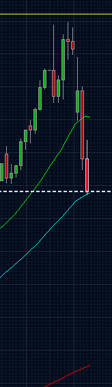 In einem der vorherigen Posts habe ich gelesen, dass die Chance auf einen Rebound klein ist. Hier sehe ich, dass wir zwar die Marginerhöhung an der Comex haben, aber ich sehe auch, dass wir gefallen sind wie ein Stein. Und ich sehe, dass sich der Silberfall langsam von "senkrecht fallend" in eine Kurve begiebt. (Die Tageskerzen werden kürzer) Wenn man sich die GDs 20,38,50,200 in verschiedenen TFs anschaut, dann sieht man, dass fast alle, außer dem GD 200 im Daily und 3h nach unten gedreht haben. Ich könnte mir durchaus vorstellen, dass es vor dem finalen Fall auf den GD 200 Daily noch ne kleine Korrektur der Korrektur gibt, sozusagen nen Daily "Dead cat bounce" und der Kurs 3-5 $ hinauf läuft um an einem seiner oben liegenden GD's dann abzuprallen. Das ist kein unübliches Verhalten.Dieses Bild ist aus dem Dax + GD 200. Ich habe leider keine Silberkurse, die so weit zurück gehen, um im Silber ein solches Chartbild zu finden, aber sowas kommt oft genug vor. Man sieht auch hier, dass es vor dem kleinen Hüpfer nach oben vom senkrechten Fall langsam in die Horizontale gelaufen ist. Also wie eine Parabel, nur eben von oben nach unten gelaufen.