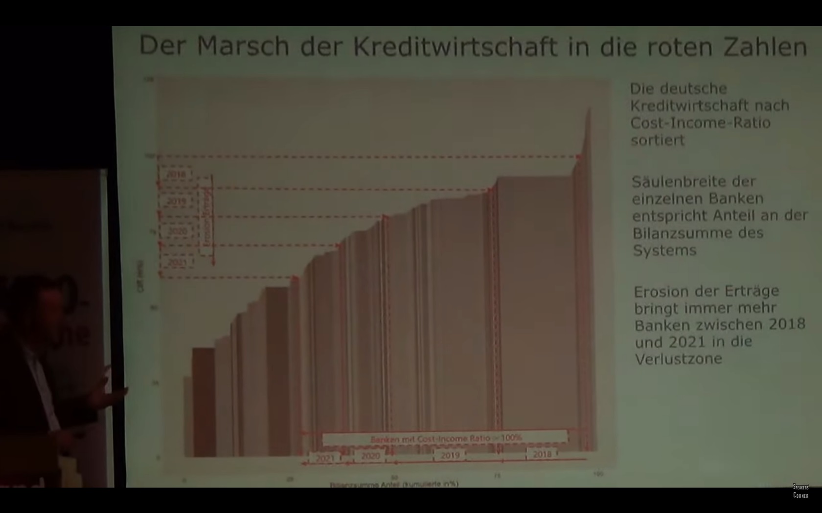 Andererseits sehe ich das Problem, das Leute wie Markus Blaschzok und Thorsten Polleit (in ihren regelmäßigen Kolumnen auf der GS-Startseite) beschreiben: künstlich unter das Marktniveau abgesenkte Zinsen erzeugen zwangsläufig die extrem ausgeprägten boom- und bust-Zyklen in der Wirtschaft, verzerren und verstärken normale Wirtschaftszyklen, da auch unrentable Unternehmen mit Kapital versorgt werden, nicht nachfrageinduzierte Überkapazitäten aufgebaut werden usf. Spätestens mit einer Zinserhöhung auf Vorkrisenverhältnisse gehen diese unrentablen Segmente der Wirtschaft pleite, mit entsprechenden sozialpolitischen Folgen (Arbeitslosigkeit etc.). Markus Krall fügt noch hinzu, wie zumal die Niedrigzinspolitik seit 2008 in der Euro-Region die Bilanzen der Banken "verseucht", weil die "faulen" Kredite in ihren Bilanzen anwachsen und gleichzeitig deren Ertragsmodell erodiert. Fazit: der Zins ist als Steuerungsinstrument für die Bewertung des Risikos für Kreditvergabe innerhalb einer Marktwirtschaft/kapitalistisches Wirtschaftssystem unverzichtbar, ansonsten herrscht Zentral-/Planwirtschaft (wie derzeit in der und durch die Geldpolitik
