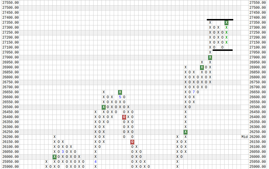 ich hab am WE mal auf einige Minen geschaut, hier jetzt mal Barrick. Das ganze aus Point&Figure Sicht incl. der dazu gehörenden Indikatoren.