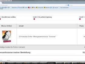 Die neue Kanada 20 Dollar Silbermünze gibt es nicht mehr zum Umtauschkurs sondern für 14,90 Euro und 4 Euro Porto nachdem man 2 Zusatzangebote ausgeschlagen hat.
