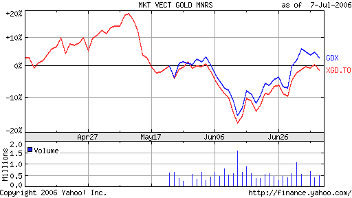 GDX is the Market Vectors Gold Miners ETF which tracks the GDM – AMEX Gold Miners Index. XGD is the iShares Canadian Gold Sector ETF which tracks the S&P/TSX Gold Index. Both ETFs allows investors and traders to gain diversified gold mining equity exposure. The main differences are: The XGD trades on the Canadian Toronto stock exchange and is priced with Canadian dollar while the GDX trades on the American stock exchange – AMEX and priced with US Dollar.