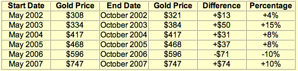 of 9%. So much for sell in May and go away for gold......