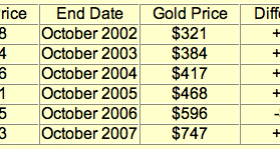 irgendwas stimmt für die Jahre 2004 - 2008 nicht in deiner Tabelle. Wenn der Goldpreis unverändert bleibt, ergibt sich auch keine Differenz.