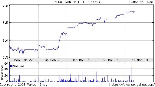 TORONTO, ONTARIO--(CCNMatthews - March 3, 2006) - Mega Uranium Ltd. (TSX VENTURE:MGA - News)